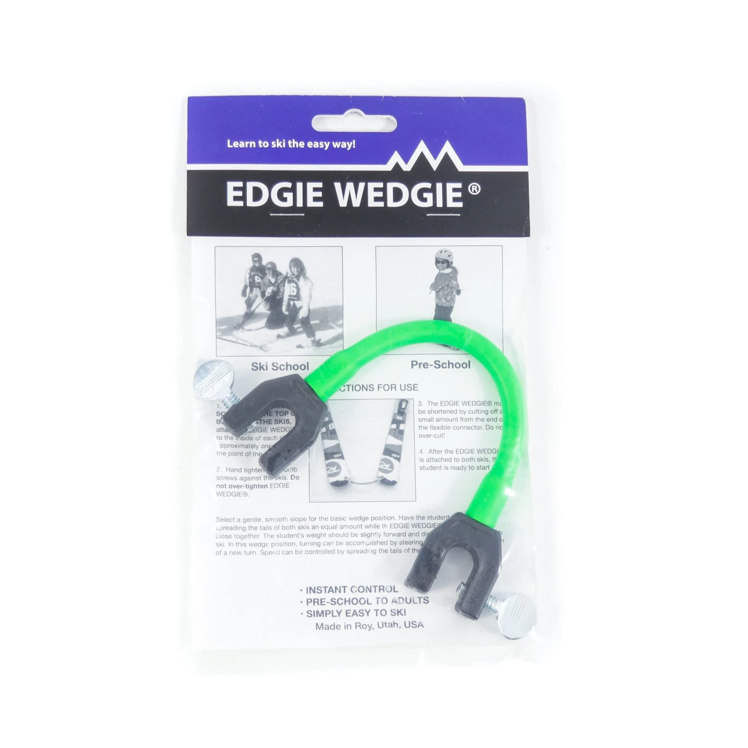 The Edgie Wedgie is an absolute classic for early skiers. And there’s a reason that this tool is so popular. Strapping skis to a young kid’s feet for the first time can make maneuvering quite difficult for them. The Edgie Wedgie keeps the skis in a controlled wedge position, giving balance to the rider and rendering it nearly impossible for the tips to cross. The Edgie Wedgie cuts down on avoidable falls, teaches early technique, and also speeds up the learning process!Â